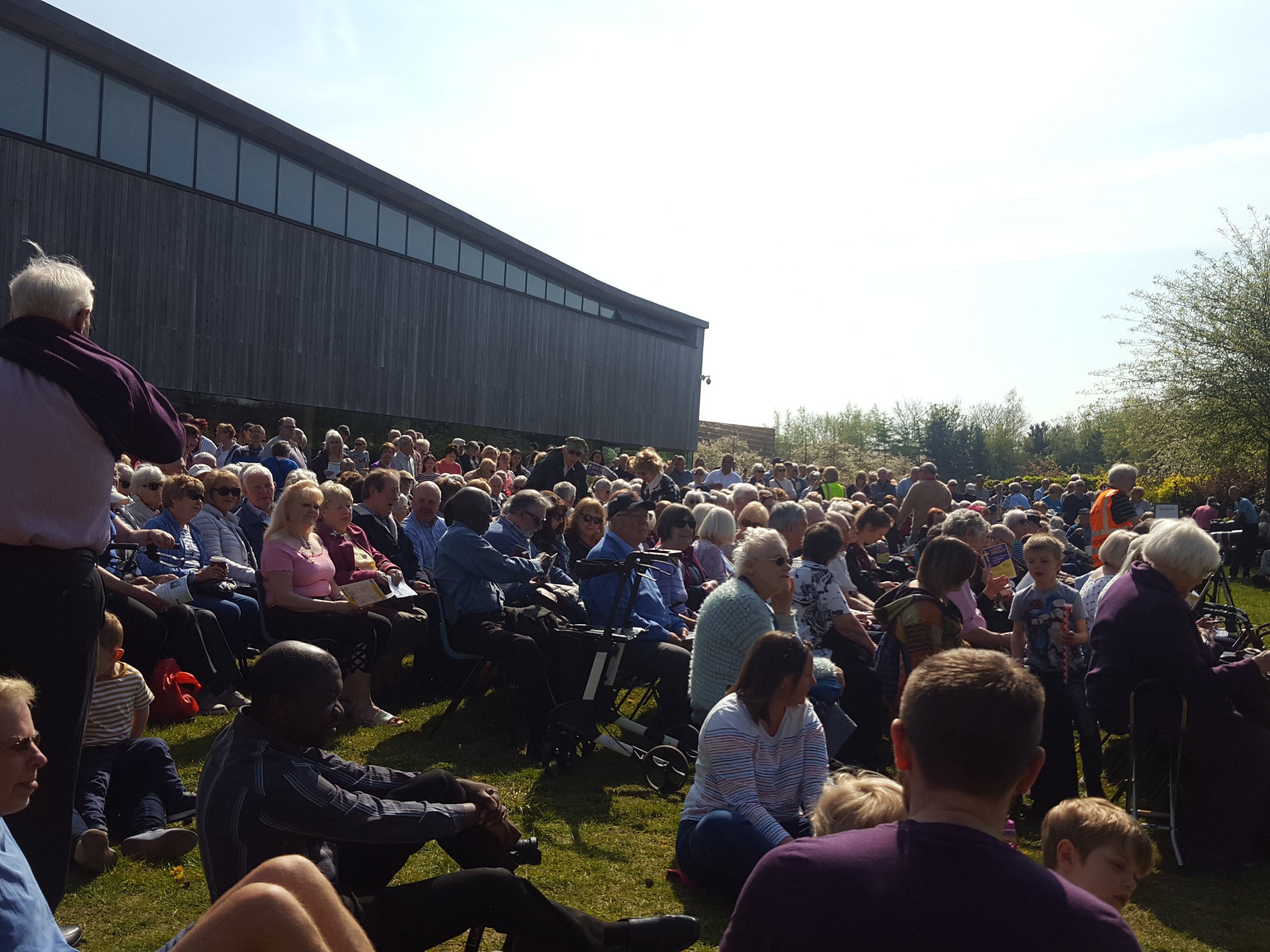 The passion play is about to start. Sitting in the sunshine is no chore at all!