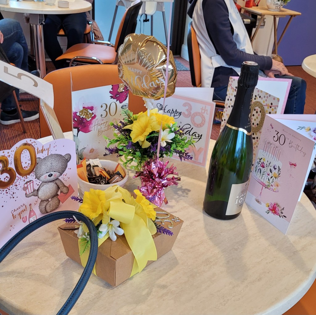 I had an excellent birthday on Monday. I went to the Hub where I was greeted with balloons, cards, cake and singing! It was a wonderful surprise and I had a perfect morning, chatting, knitting and eating tasty things.