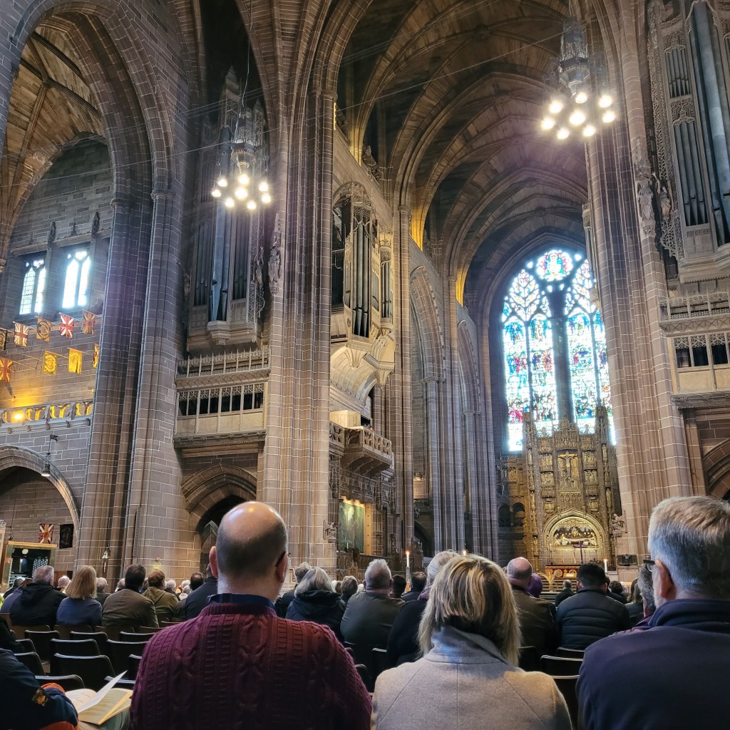 9.35am We’re on the train to Liverpool for the Chrism Eucharist at the Cathedral. This is a service where the special oils for baptism, anointing of the sick, and chrism are blessed. The oils are then dispensed into lots of little bottles and distributed around the diocese (see picture at the top!). We also get to renew our baptism and ordination vows, and all clergy are expected to attend.