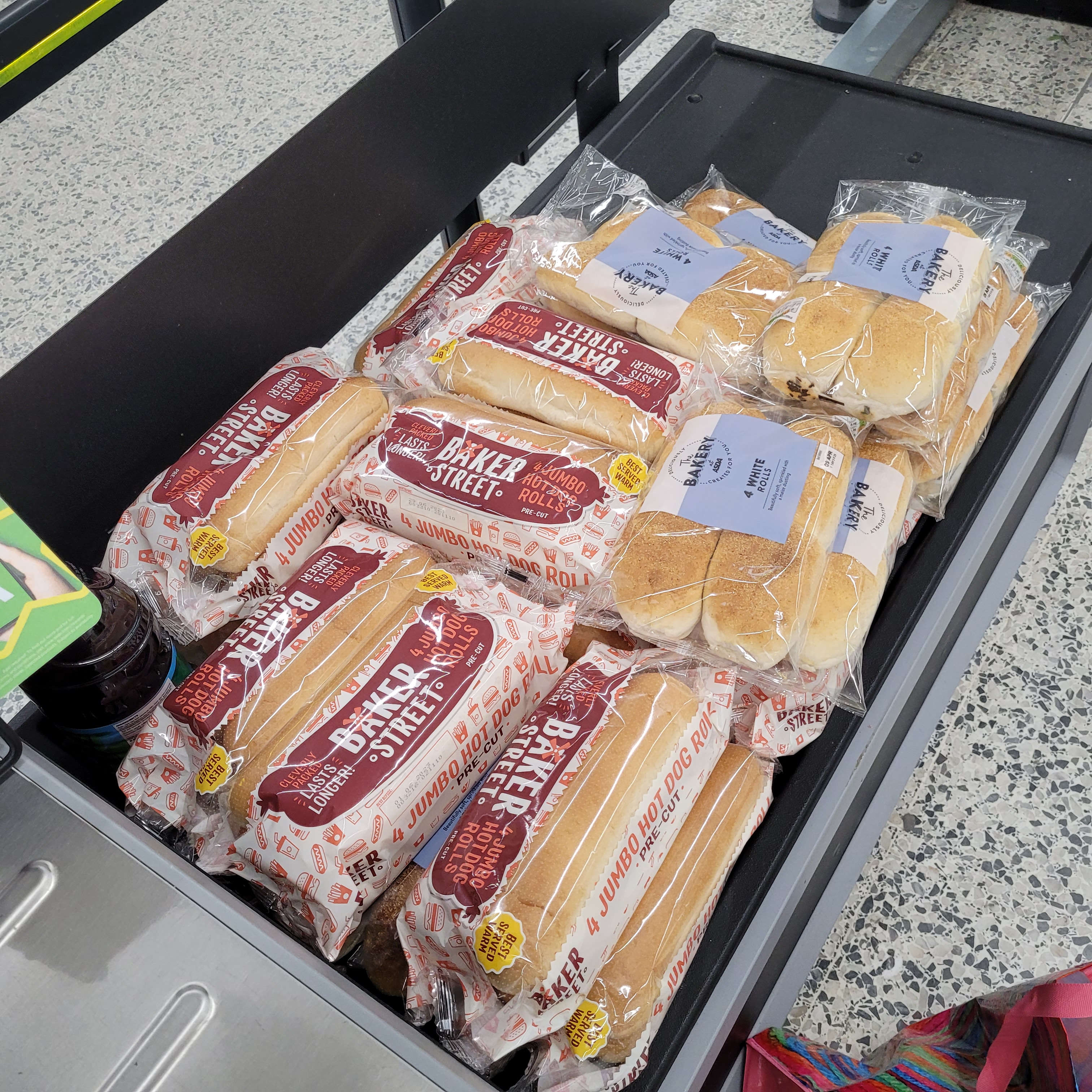 9.20pm On my way home, I needed to go to Asda to buy 150 bread rolls for the hotdogs on Saturday. So far, over the past week, I’ve bought bonnets, Easter bunnies, hotdogs, and bread rolls in bulk!