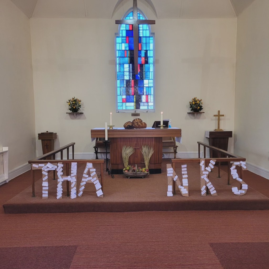 The service this morning was good, too! We had Guides, Brownies and Rainbows in attendance, and it was a lot of fun. My colleague preached brilliantly, and my prayers included us all decorating large cardboard letters spelling THANKS with sticky labels. Everybody was given a label to write what they are grateful for, and the end result was lovely.