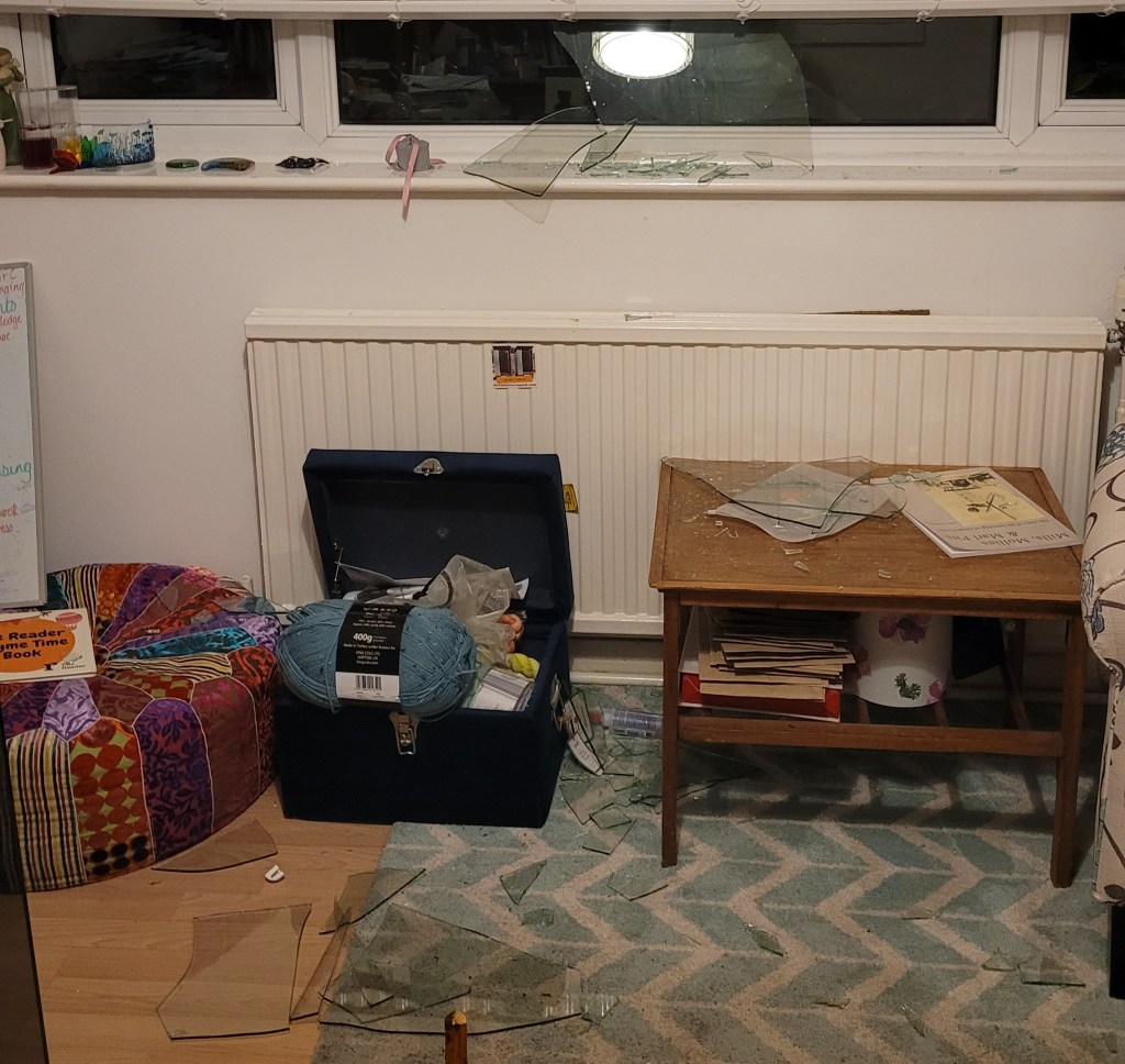 We went through to see that the window had shattered quite dramatically. I think I spent a good 30 seconds racking my brain trying to think how this accident had happened. Then, the realisation dawned that this had been done on purpose.