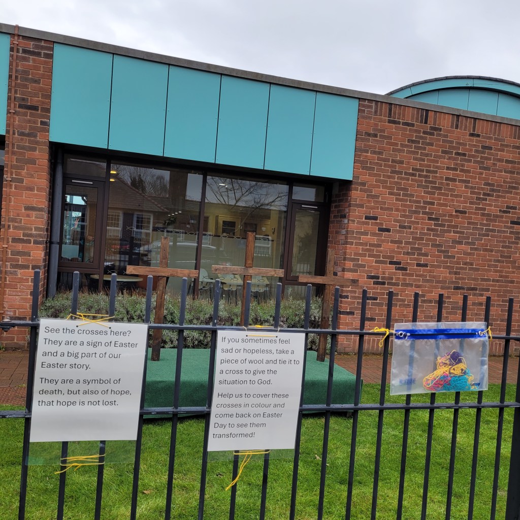 So I asked if I could have it for Easter! It looks like a big hill of hope, draped over the crosses like that! Lots of people have stopped to take photos and read the words on the railings too.