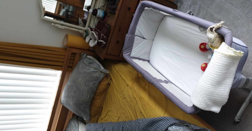 There's a box by my bed and it says Next2me. It came from a friend who got it from a friend. Six babies so far, I think, slept right next to their Mum. It's going up in the loft for when we find another Mum who wants her baby to sleep right next to her. [...]